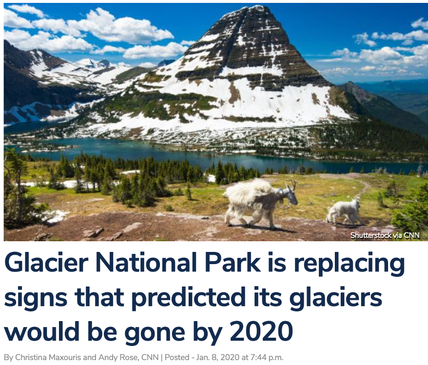 In truth, the U.S. Geological Survey warned the park back in 2017 that the forecast model no longer predicted a glacier-less 2020, but a park spokeswoman told CNN that the park didn’t have enough money to change the signs.