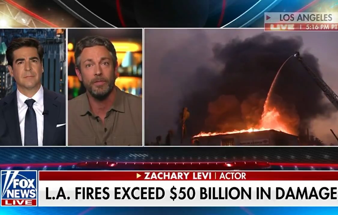 Zachary Levi spoke to Fox News host Jesse Watters on Wednesday about the raging fires in L.A. County.