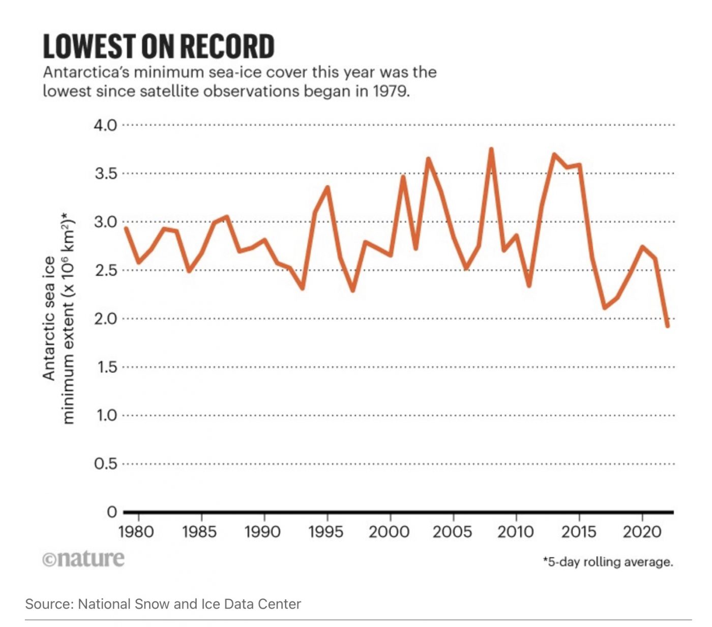 It’s another climate calamity. Greenpeace has said this year’s decline in the extent of Antarctic sea ice was unprecedented since measurements began.