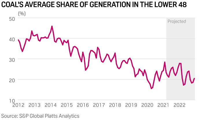 “About 9.2 GW of coal-fired generation retired in 2020, down from 2019’s 14.2 GW, and another 3.2 GW is expected to retire in 2021, followed by 4.9 GW in 2022, S&P Global Market Intelligence data shows,” says S&P.