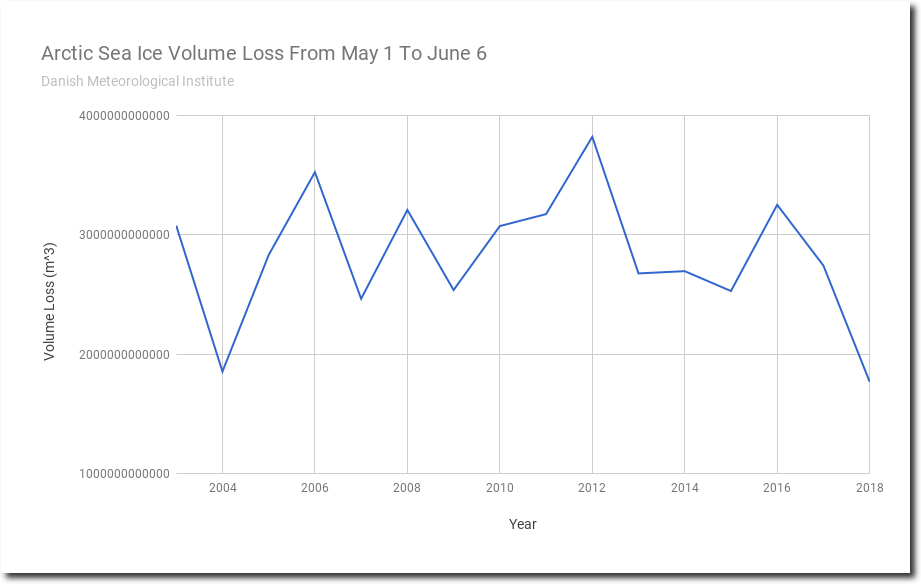 Because the cold air stayed in the Arctic and didn’t mix with mid-latitude air, May brought a record low melt rate of Arctic sea ice.