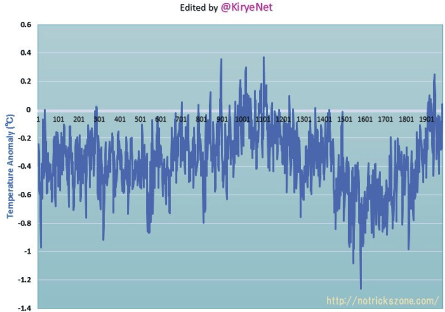 The retired Japanese professor writes that at around 1000 A.D. — the Medieval Warm Period — there were no signs showing CO2 concentration was higher.