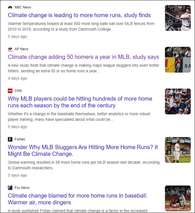 If you are on the climate beat you are most certainly not going to be discussing steroids in baseball, seam size, humidor practices, or any of the other myriad factors related to home-run production. The climate beat needs climate stories.