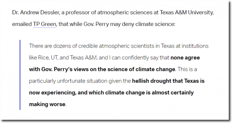 Rick Perry’s observation was based on long-term observation, whereas the climate experts based their junk science on a single short-term weather event.