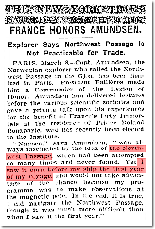 The Northwest Passage was open in 1903, but perhaps not this year.