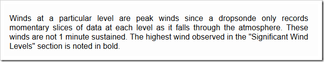 This is the data from the dropsonde when the storm was at its peak. (To replicate it, you need to use the decoder):