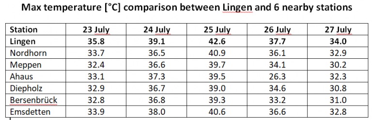 Recently I wrote here how Germany’s now-infamous record-setting weather station in Lingen was producing readings that were 2-3°C hotter than surrounding stations, yet the German DWD weather service refused to acknowledge the station was likely producing bad data.