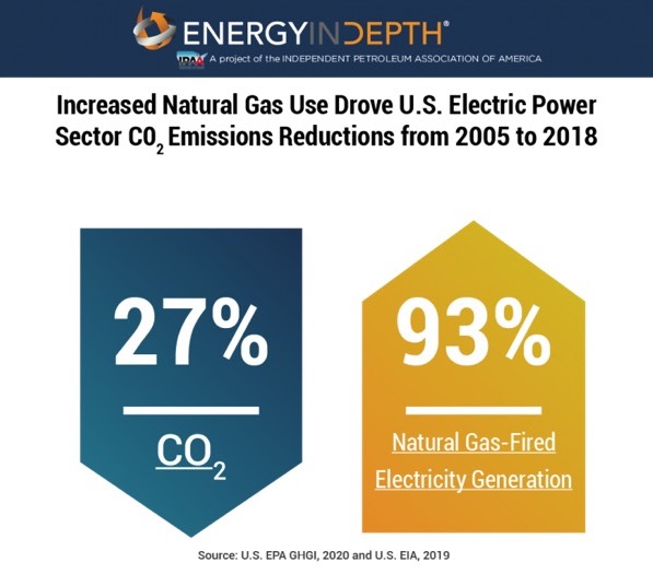 “The decrease in coal-powered electricity generation and increase in natural gas and renewable electricity generation have contributed to a 27 percent decrease in overall CO2 emissions from electric power generation from 2005 to 2018.”