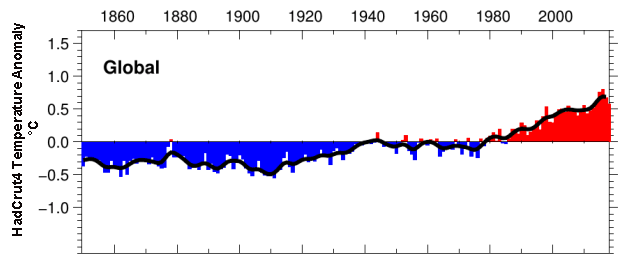 The HadCRUT4 dataset is a joint production of the UK Met Office’s Hadley Centre and the Climatic Research Unit of the University of East Anglia.
