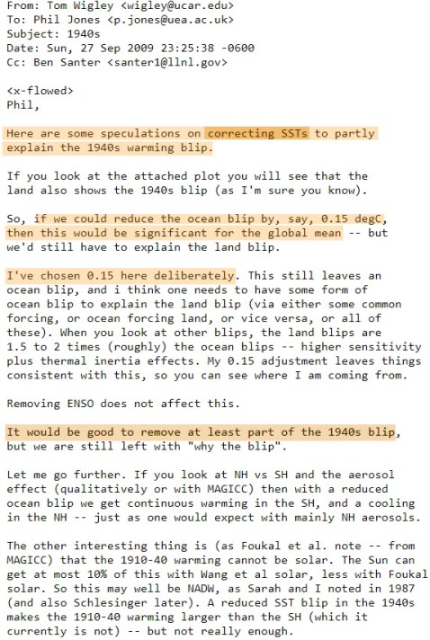 In 2009, overseers of the HadCRUT global temperature data discussed “correcting” the “1940s warming blip” in e-mails that they later tried to hide from Freedom Of Information Act (FOIA) investigators.