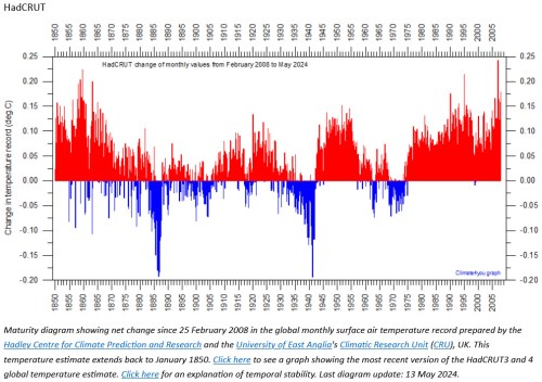 What’s also noticeable here in this HadCRUT-changes-temperature-data chart provided by climate4you is just how much warmth has been added to 21st-century temperatures since 2008.