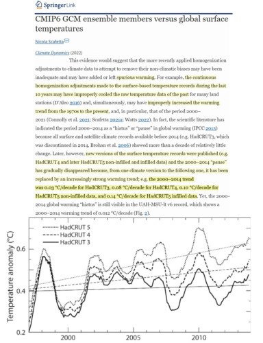 This was increased to 0.08°C per decade by version 4, as the overseers of the HadCRUT data conveniently added 0.1°C to 0.2°C to the more recent anomalies.