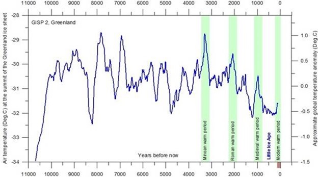 Ice core, tree ring, and coral proxies go back much further. Had he chosen to reconstruct a more appropriate time, the entire Holocene, he would have found that we are nowhere near the peak in temperatures for the current warming period, and all previous Holocene temperature optima occurred at lower CO2 levels.