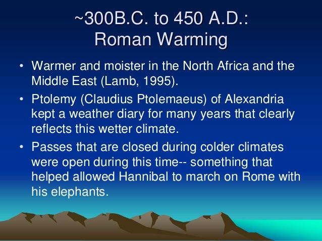 - There have been many previous temperature peaks during the Holocene, all of which reached temperatures above today’s level. The Minoan, Roman and Medieval warming periods were all warmer than today. Archaeological evidence of a warmer past are Roman vineyards in Northern England and the Vikings inhabited and farmed Greenland.