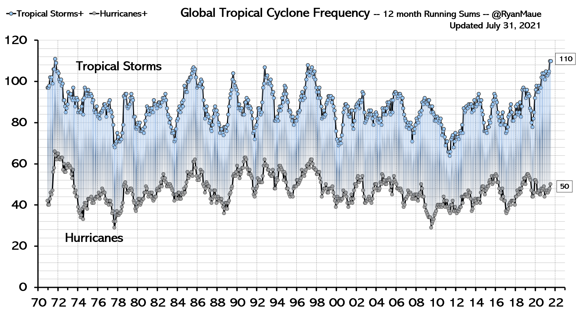 Contrary to what the IPCC says, we see that increased CO2 and warming have had no effect on hurricane frequency or intensity.