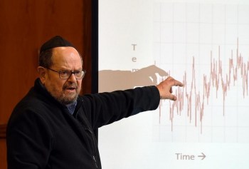 “Maybe you can explain, to a plain person like myself,” asked Rabbi Chaim Fishman, with white beard and black fedora, gesticulating as he spoke, “when they’re showing the glaciers falling and the polar bears have nowhere to go – is it warming or what?”