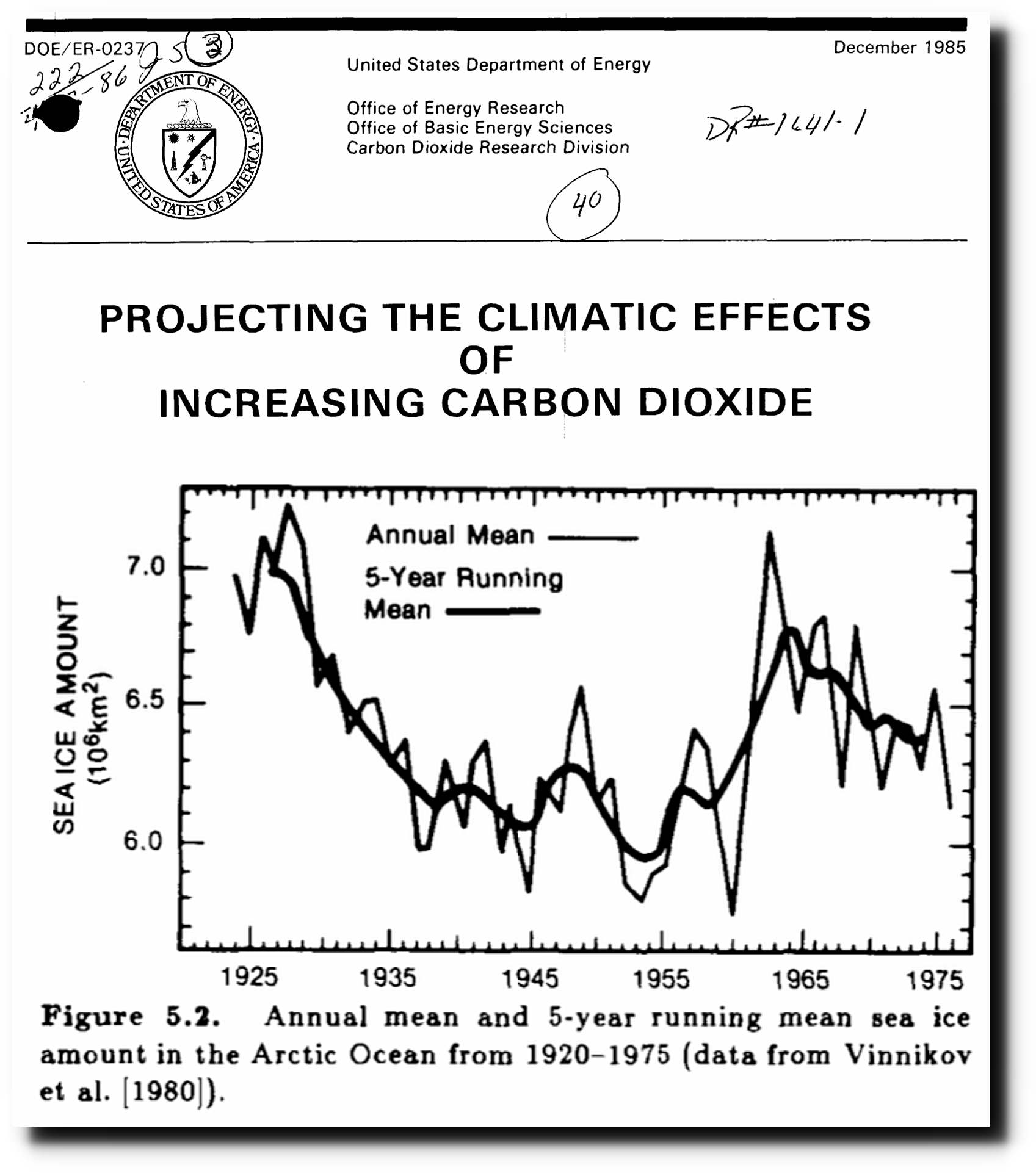 This 1985 DOE climate change report had Arctic sea ice data back to 1925, which showed little ice from the 1930s to the 1950s.