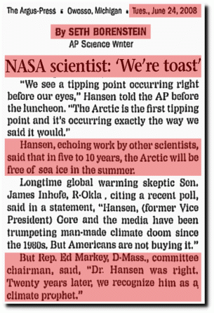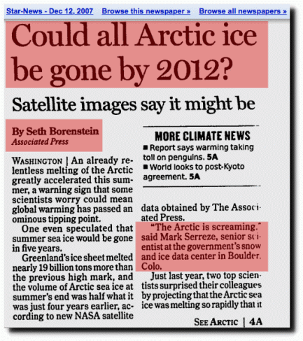 At the time, the New York Times was worried about expanding Arctic ice and a new ice age.