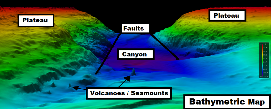 In the past, the bathymetry (elevation) of earth’s ocean floors has been mapped utilizing sound waves, satellites, and plum line type methods. However, most of this mapping is of low to moderate resolution. Ocean elevation is used to identify fault ridges, volcanoes, and hydrothermal vents. It has been difficult to recognize and count the number of these types of ocean floor geological features using low-resolution ocean floor elevation maps, making many of these features nearly invisible.