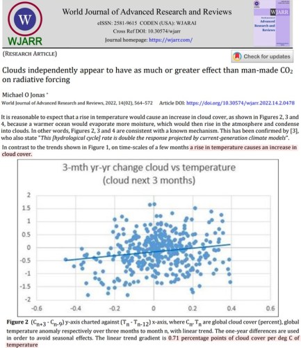 Furthermore, real-world observations (Jonas, 2022) are very clear on the question of whether warming induces a decline in cloud cover.