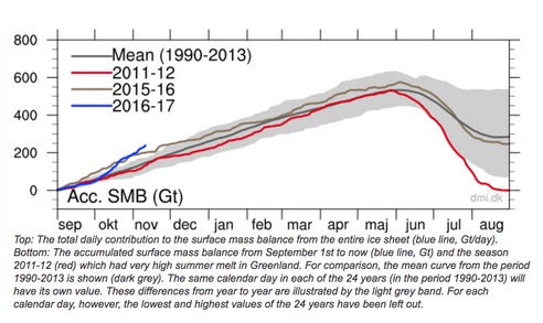 Read moreGreenland's surface has been gaining about 3.5 billion tons of ice per day since the first of September. This is...