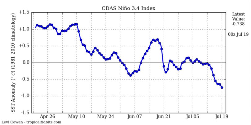 Read moreThe warming El Niño weather phenomenon has been history since June 2016. The cool La Niña started in mid July...