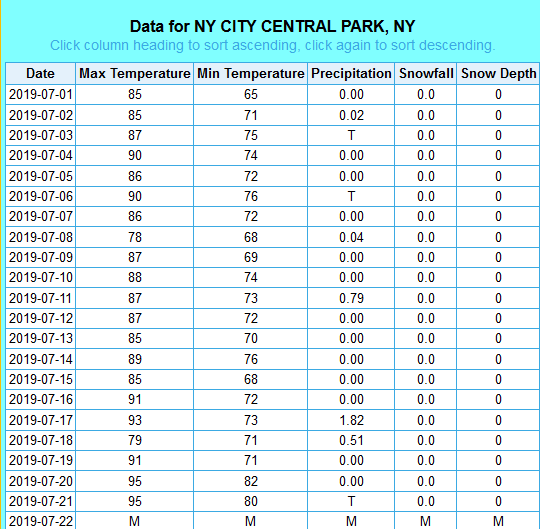 The record for Central Park was 106F, set in 1936. Since 1870, 95F has been equaled or exceeded in no less than 112 years.