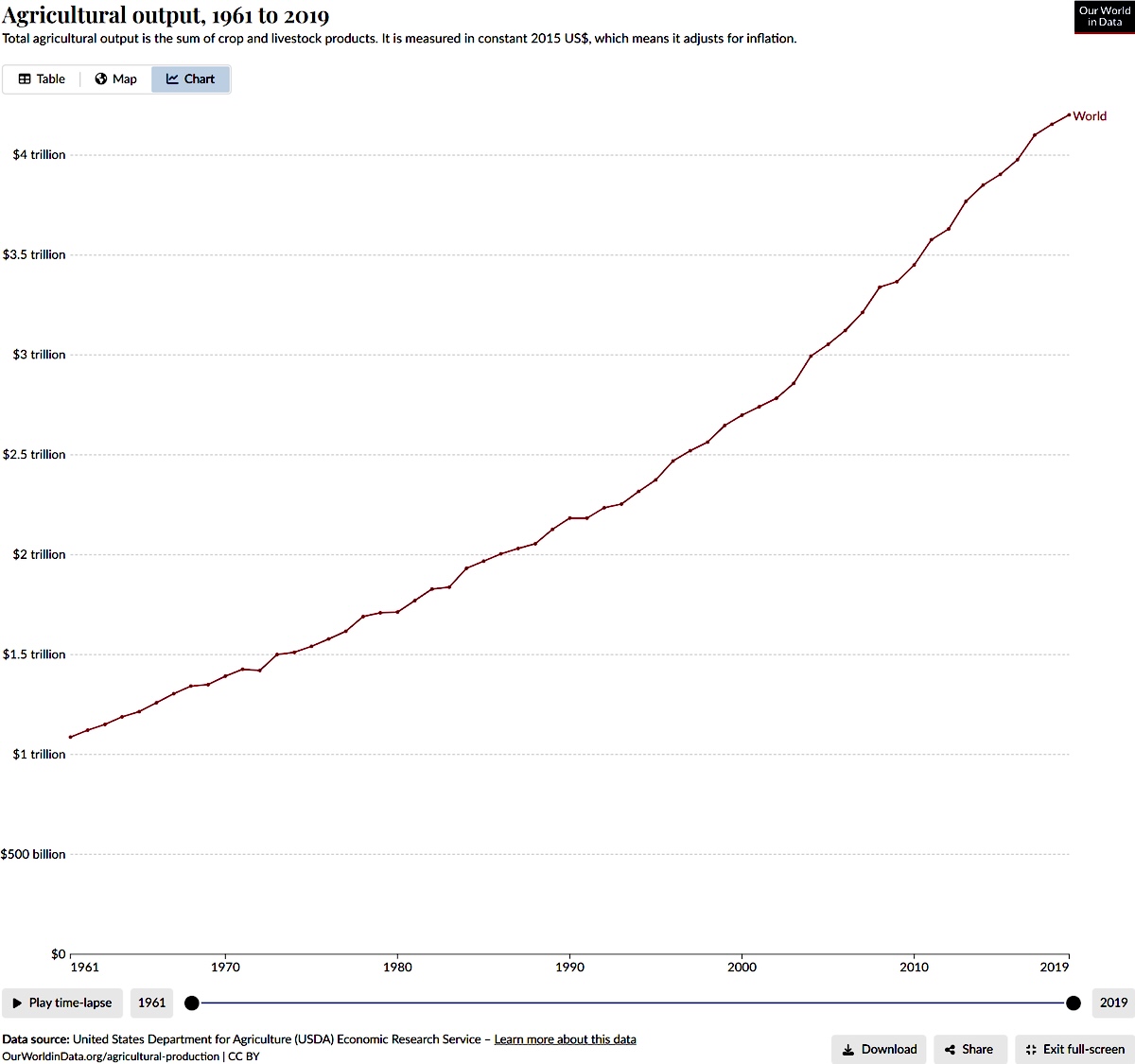 Global agricultural productivity is at an all-time high, and hunger levels have declined in the era of the so-called “climate emergency,” thanks to fossil fuel-based fertilizers and mechanization.