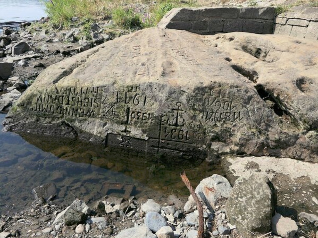 These stones were embedded into a river during droughts to mark the water level as a warning to future generations that they will have to endure famine-related hardships if the water sinks to this level again.