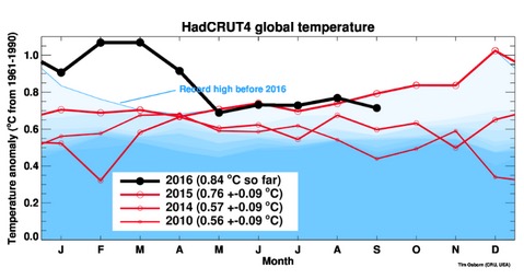 But now comes a reality check: The El Nino has ended and the global temperatures are falling. Many think that 2017 will be cooler than previous years. For some the prospect of global cooling is a problem, especially for those who see the well-established change in the behaviour of global temperatures after around the turn of the century as an powerful “weapon” used by “sceptics” to cast doubt on climate science. But these sceptics were talking about real, emerging climate science in a way that was resisted by many of the more publicly visible scientists who had failed to adapt to the facts. Only time will place the El Nino’s influence of previous years into its proper context against variations in the background rate of global temperature change. Will the Pause resume? Some scientists fear global temperatures may drop back in years to come. They are preparing their colleagues for such a situation and are warning climate scientists “not be distracted by temporary fluctuations in the other direction which will eventually reverse.” –David Whitehouse, GWPF Observatory, 3 November 2016