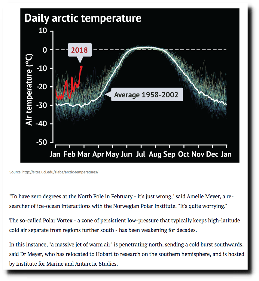 My favorite Australian climate fraudster (Peter Hannam) says -10C at the North Pole is actually 0C, and it is really hot. He also said that the Polar Vortex moving south is caused by global warming.