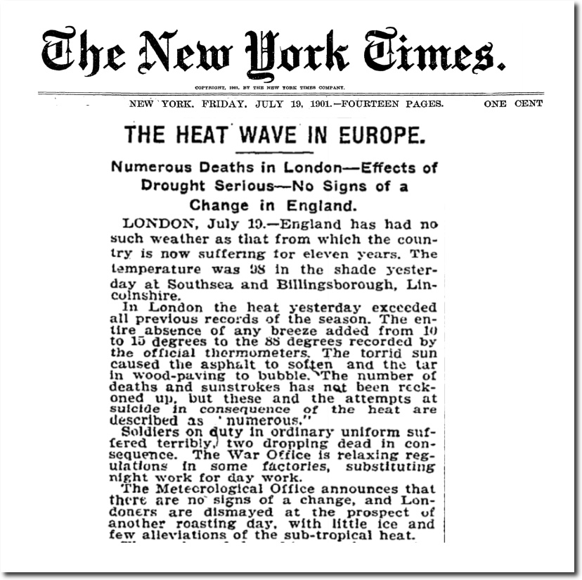 The year 1901 had some actual heatwaves – unlike the imaginary ones climate experts focus on now. CO2 was below 300 PPM.
