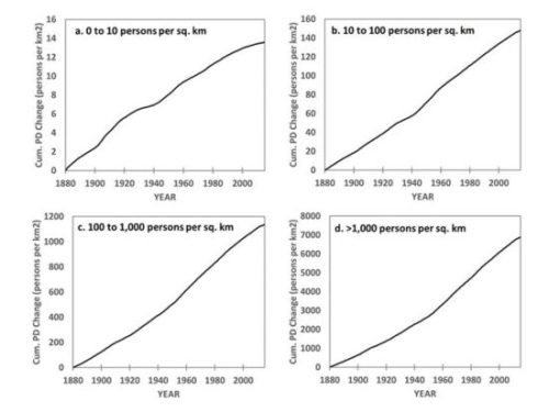 And since all classes of stations (rural to urban) have undergone average population growth in the last 130 years, one cannot even assume that rural temperature trends are unaffected by UHI (see Fig. 2).