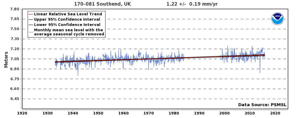 However, even the official projections have little connection with reality. The sea-level rise at Southend on the Thames estuary, for instance, has been just 1.22mm a year since the early 20th century, with no acceleration.