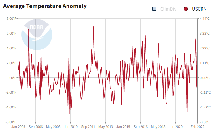 The chart below, from the US Climate Reference Network, which began taking data in 2005, replacing the old Historical Climatology Network stations, shows a very slight upward trend in temperatures across North America.
