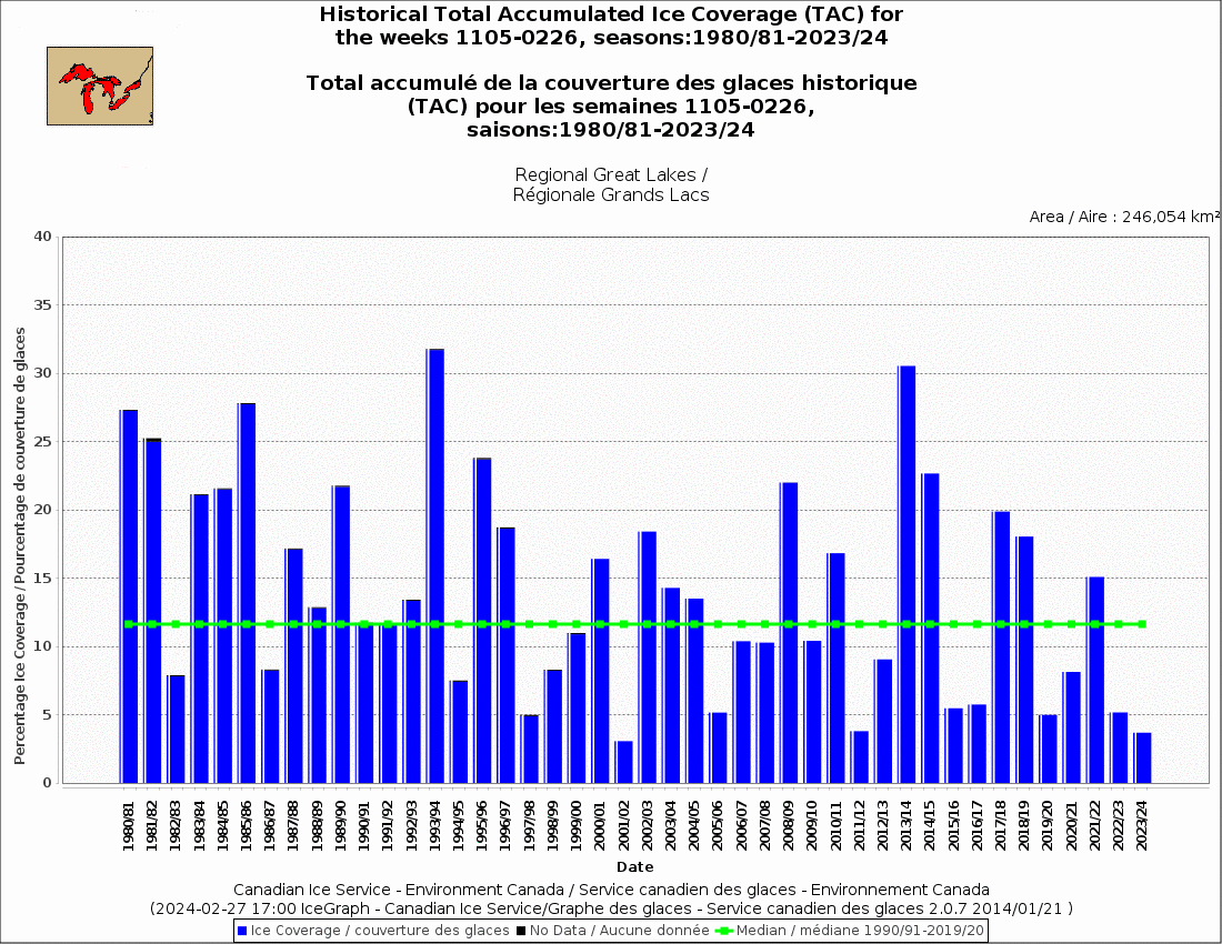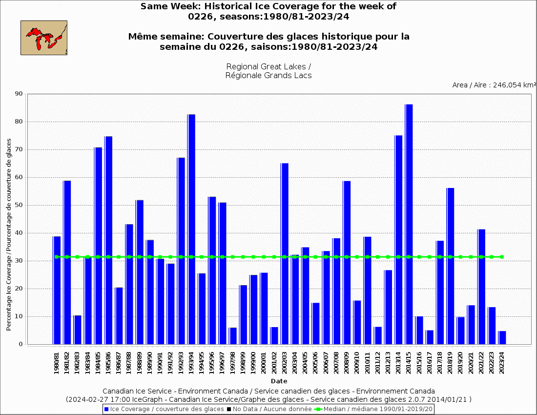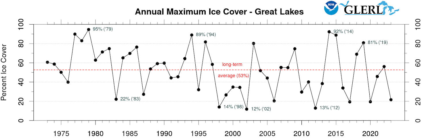 In fact, ice coverage data for the Great Lakes show that coverage is highly variable from year to year.