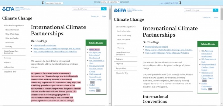 Trump’s team made similar changes to Whitehouse.gov, getting rid of Obama’s “climate change” webpage and replacing it with an “America First Energy Plan” page with no mention of global warming. Obama’s Whitehouse.gov is archived online.