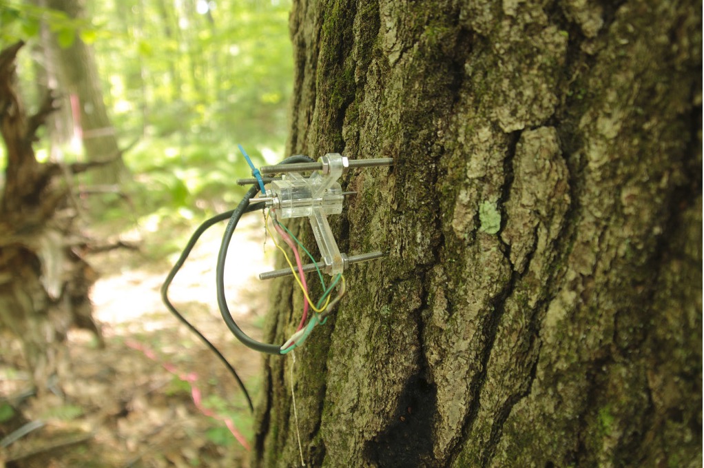 With funds from various National Science Foundation grants, post-doctoral fellow Tim Rademacher and his team have outfitted a red oak tree with sensors, cameras, and code, allowing it to piece together tweets using collected data and pre-written text.