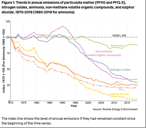 But perhaps, seeing as how they mention ‘improving public understanding’, they might care to remind the public that our air in the UK is the cleanest for decades, and probably much longer: