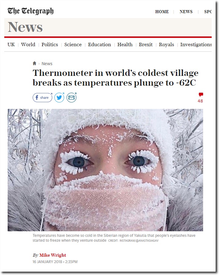 Thermometer in world’s coldest village breaks as temperatures plunge to -62C