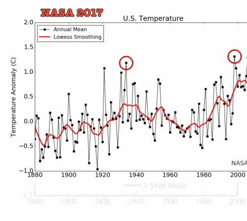 I frequently post these graphs showing how NOAA and NASA have erased America’s hot past, and particularly how they made the incredibly hot year of 1934 disappear.