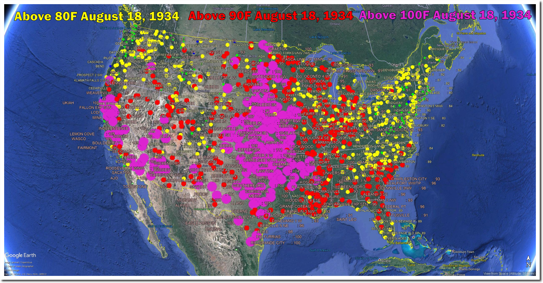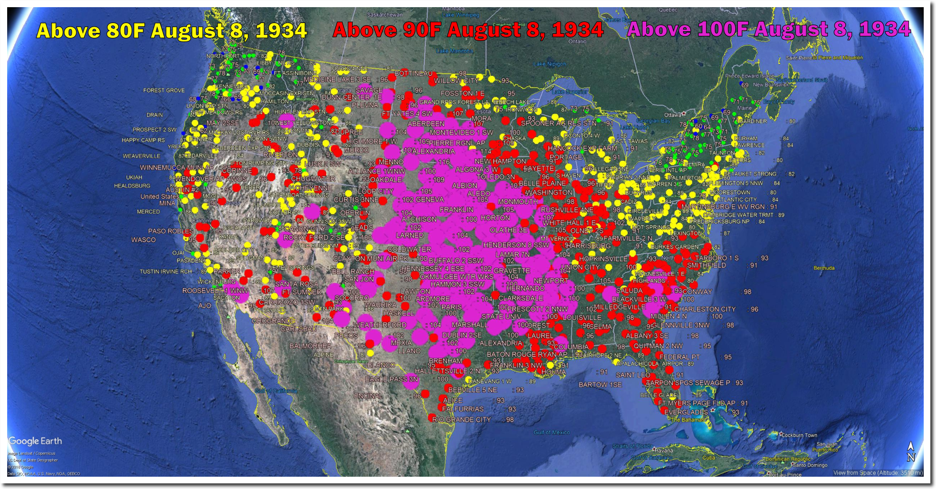 Here are some of the heatwaves of 1934 that Hansen et al erased via data tampering.