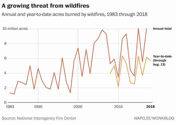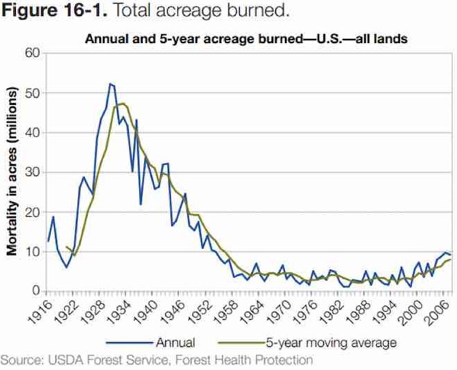 Today’s climate zealots will feature the history of wildfires in the US since the 1980s. This is OK because the chart is based on the best data in North America.