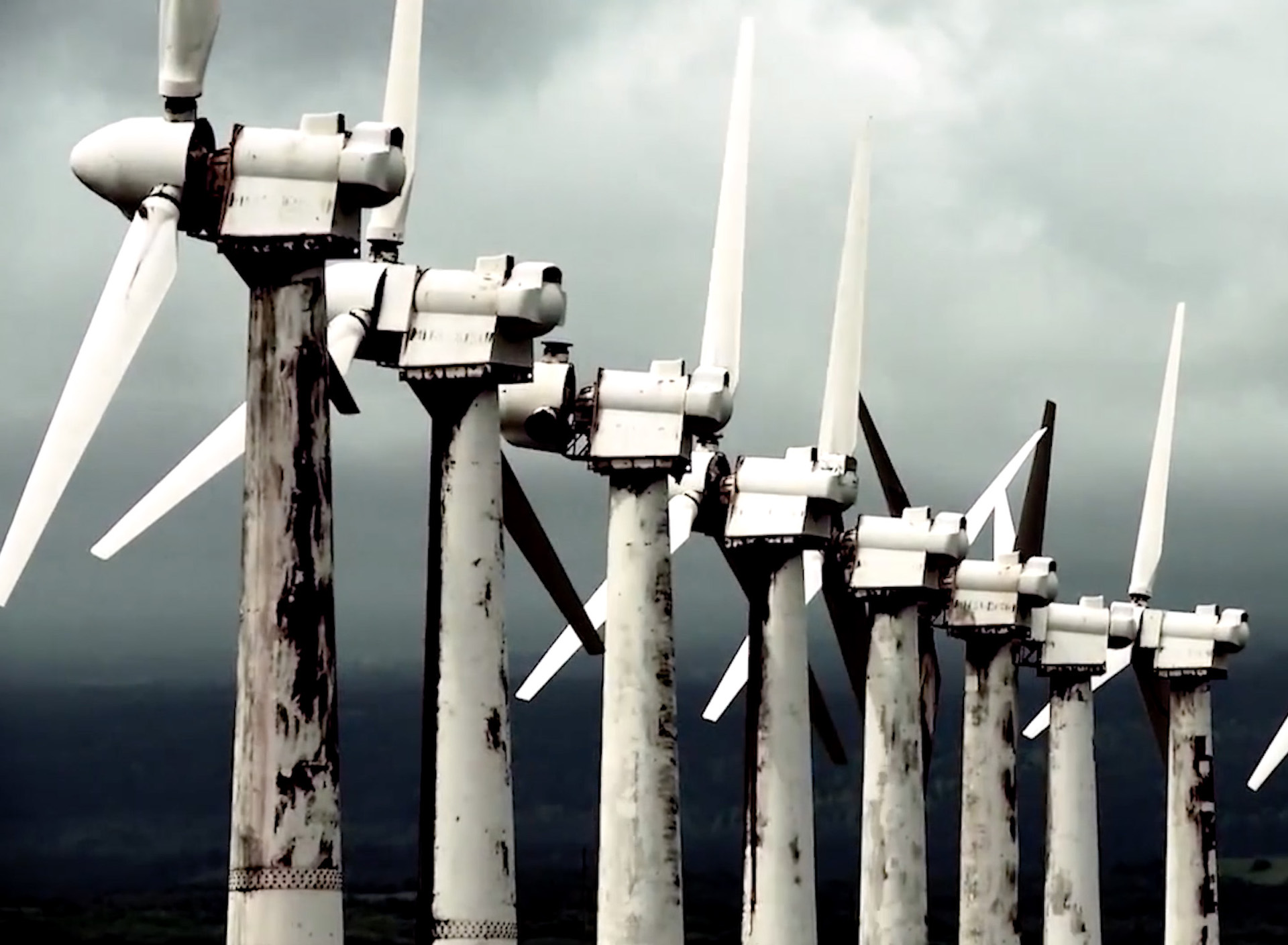 The crew films one of those turbines being erected outside of town. Each one is comprised of nearly 5,000,000 pounds of concrete, steel, aluminum, copper, plastic, cobalt, rare earth, fiberglass, and other materials.