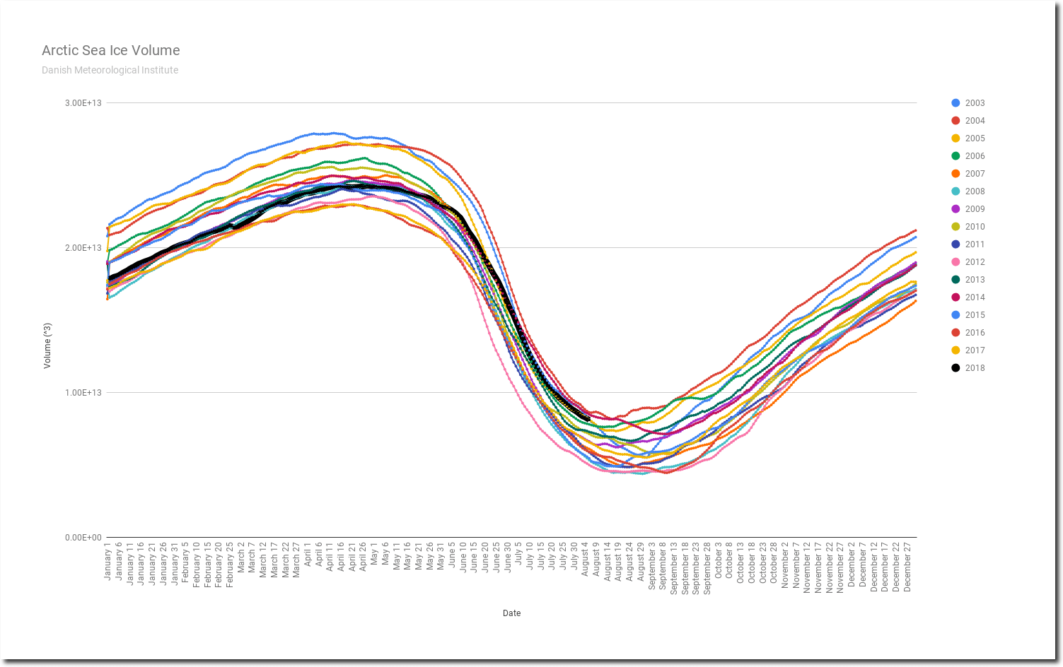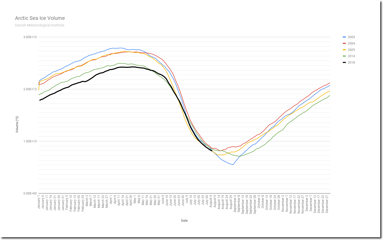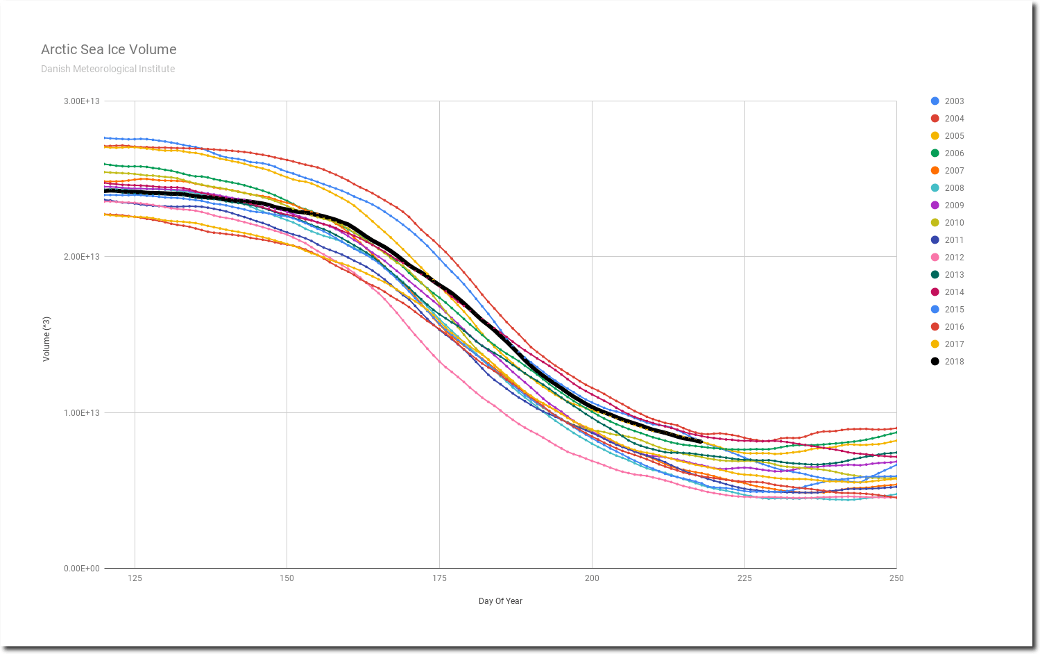 Arctic sea ice volume is fifth highest for the date since 2003, and likely to move into the #3 spot tomorrow. Melt this season has been the slowest on record.